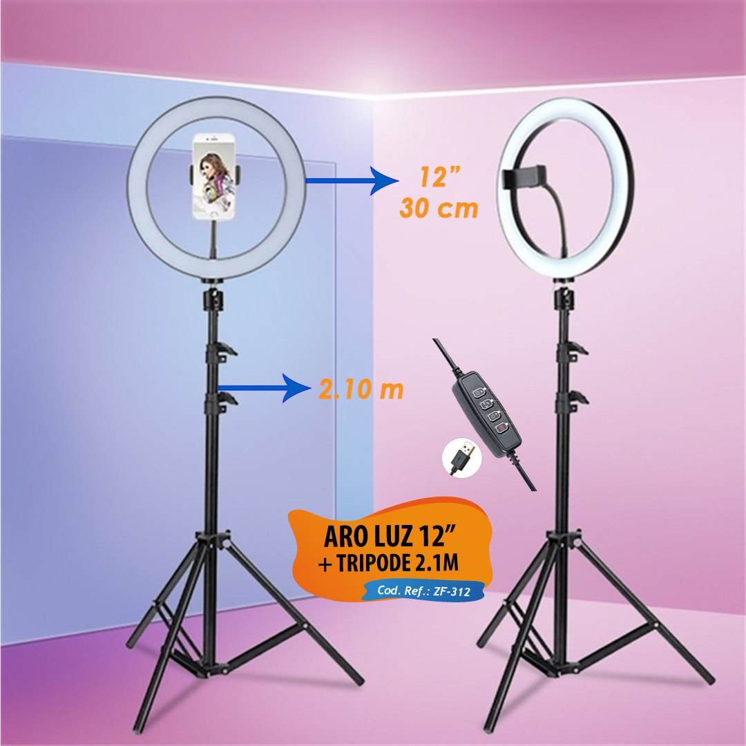 - El aro mide 30cm, y posee tres tipos de luces (Frio - Neutro y Cálido) y varios niveles de brillo.